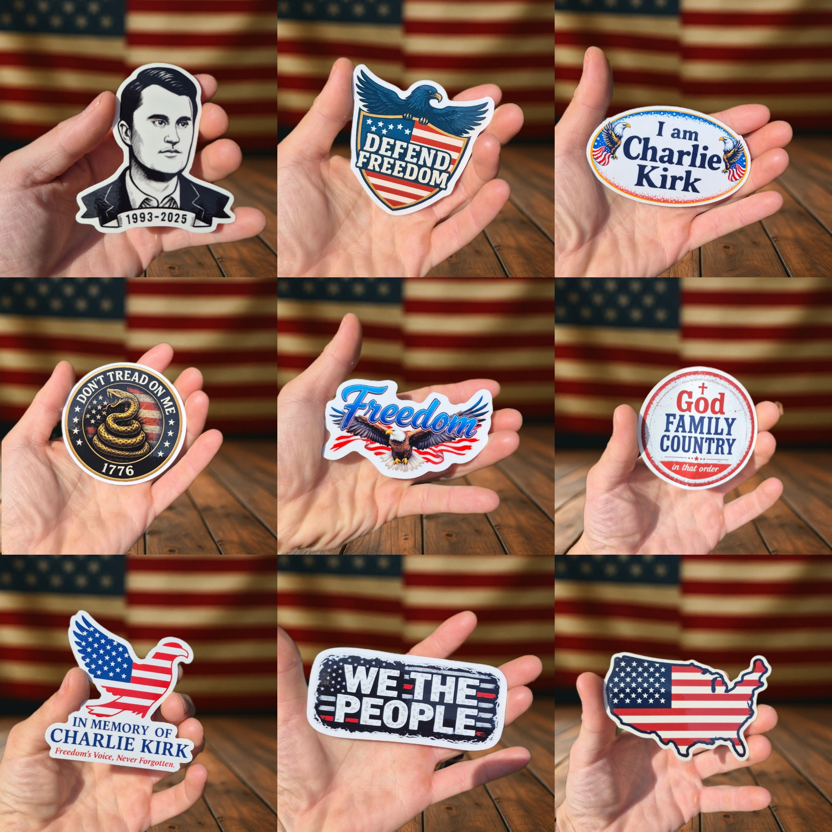 Explore our collection of 11 powerful sticker designs with new releases on the way! Have an idea of your own? We also create custom stickers. Just reach out to us at imcharliekirk@gmail.com and we’ll bring your design to life!